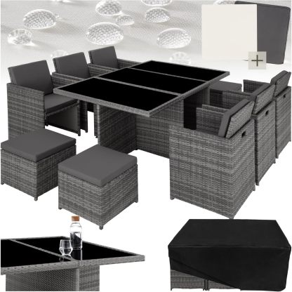 Ensemble de Jardin Extérieur en Résine Tressée pour 10 Personnes avec Table et Fauteuils, Housses et Protection - Gris